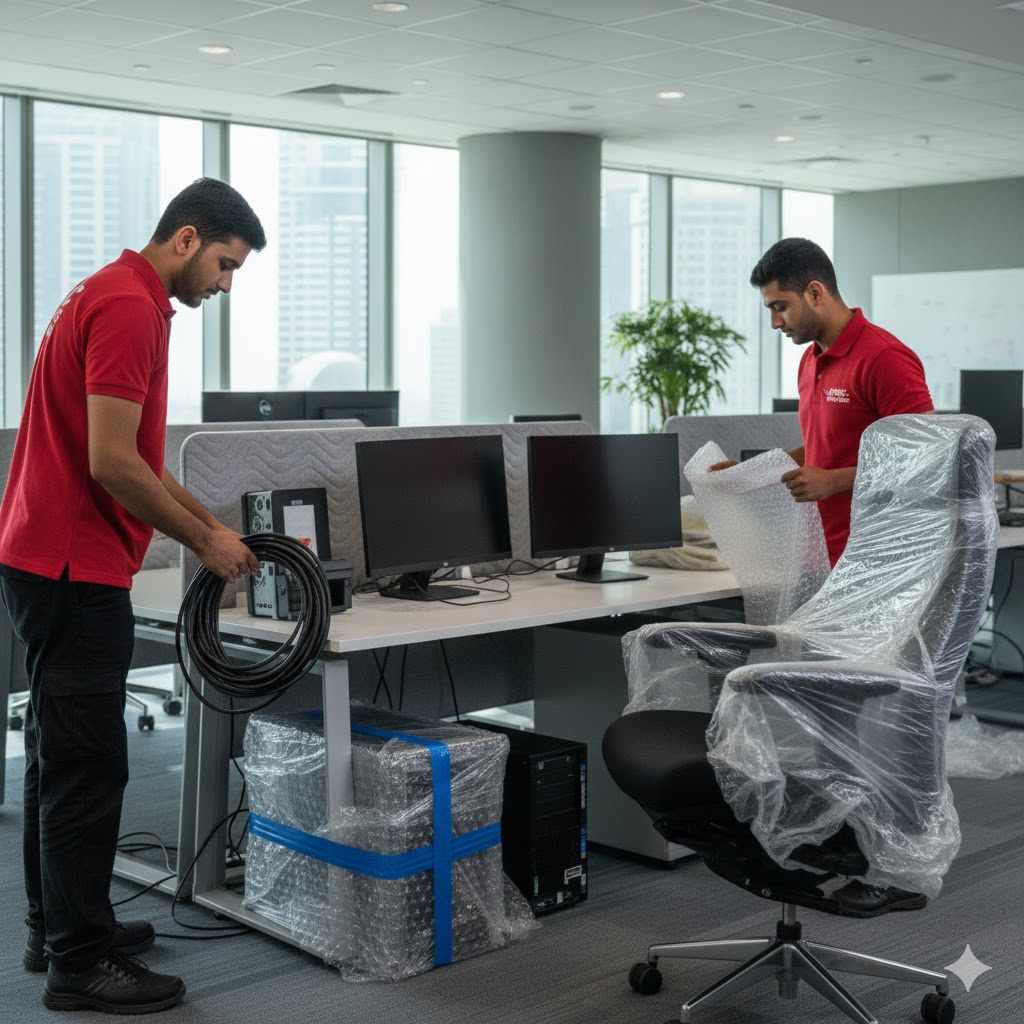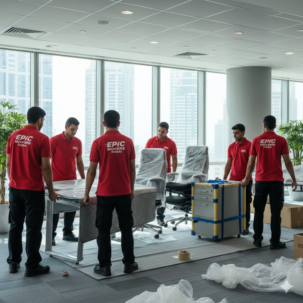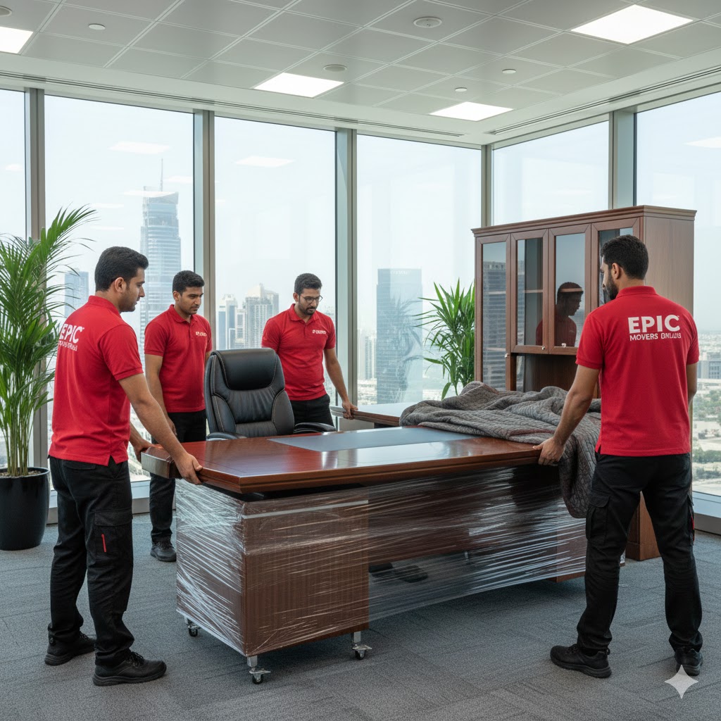 Professional office furniture movers in Dubai providing safe packing, organized dismantling, careful transportation, and efficient setup to ensure smooth office relocations with minimal downtime and complete asset protection.